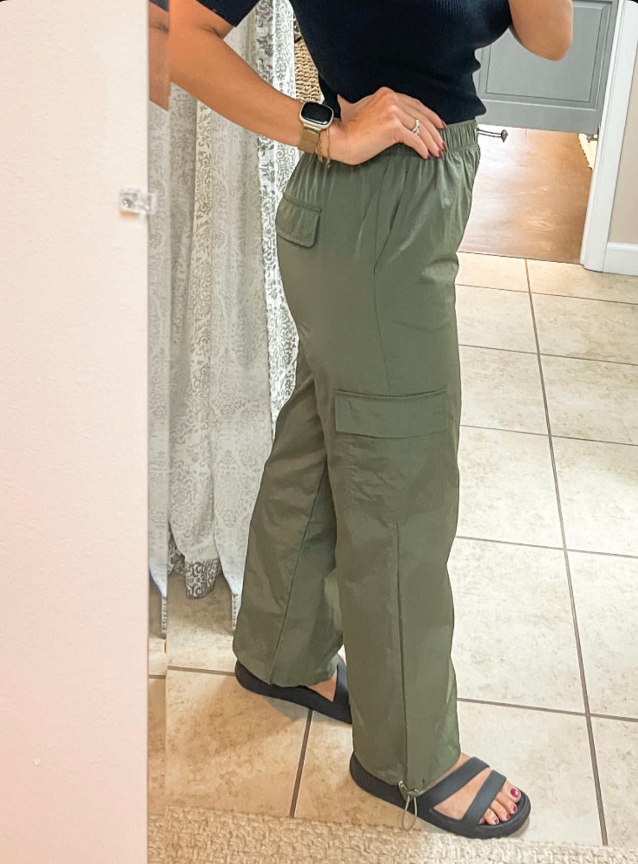 Give us all the comfy pants! This color is great! Windbreaker style cargos that are effortlessly cute!