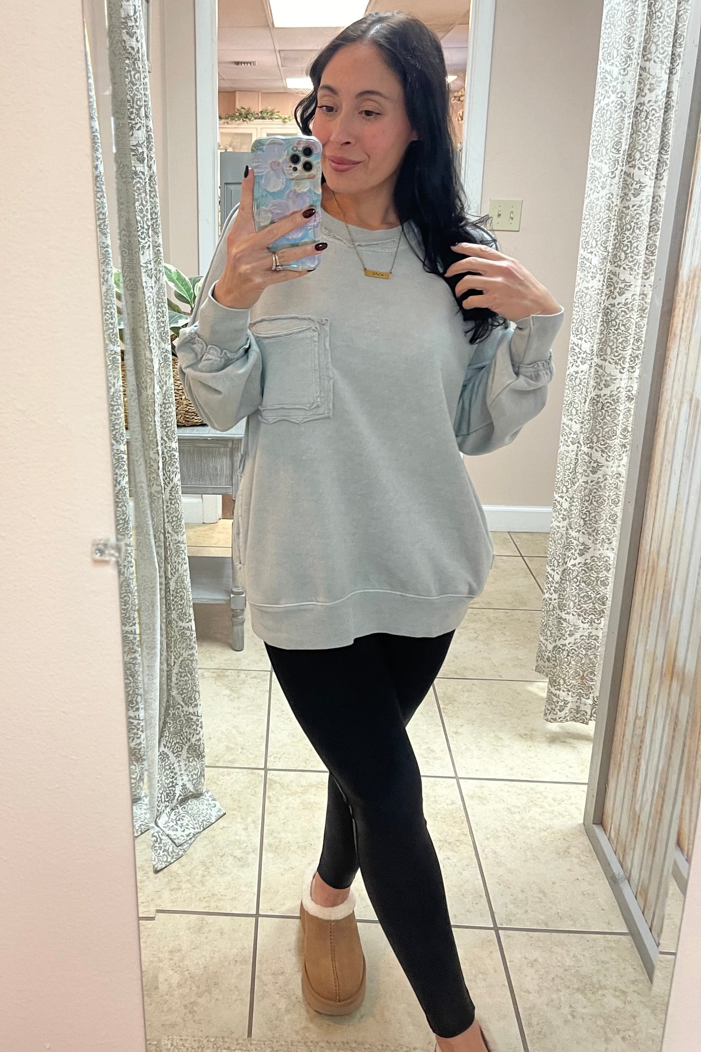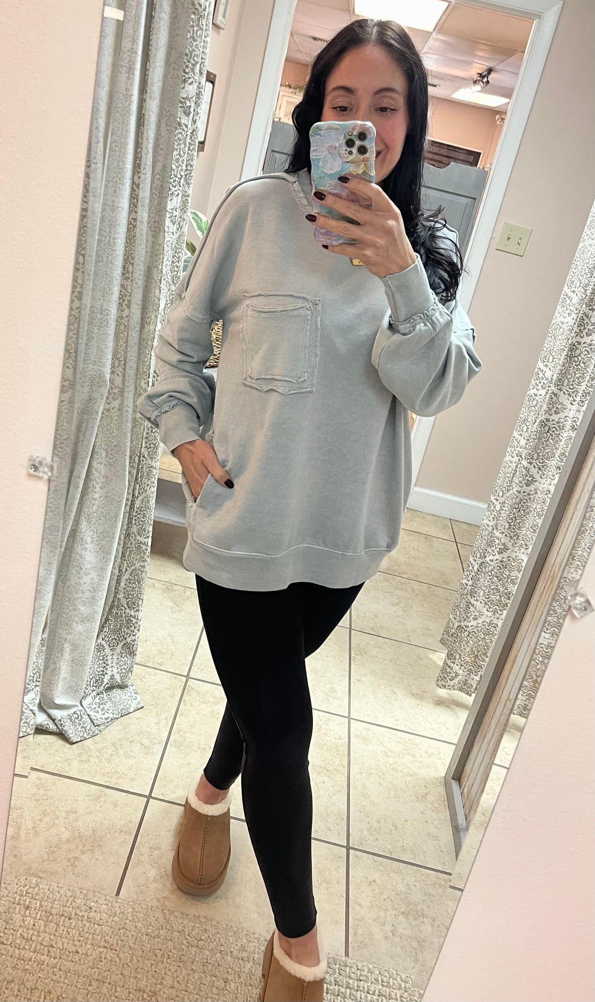 One of our favs! Acid wash detail and has pockets.